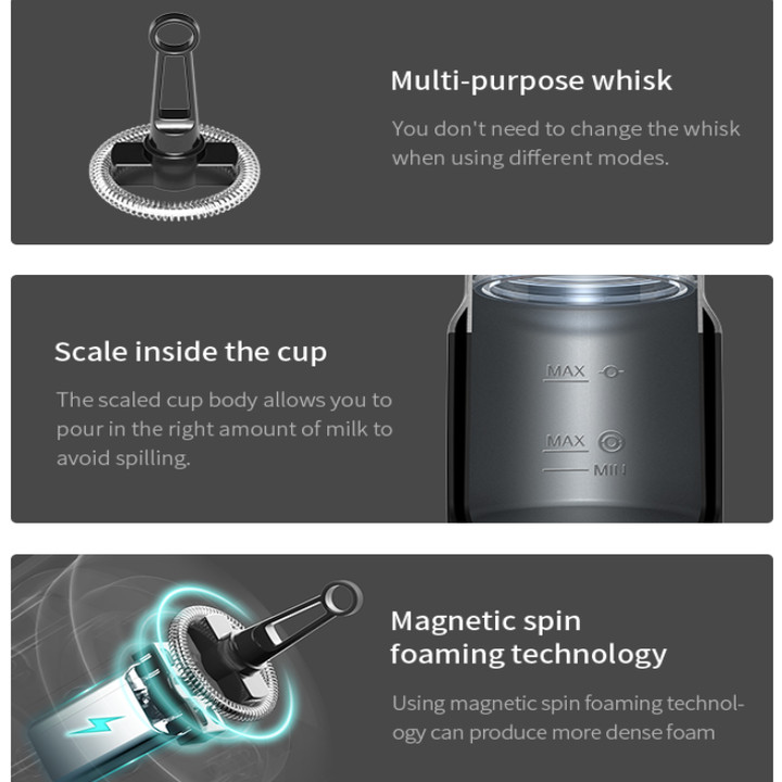 - Thiết kế 3 trong 1 tạo bọt sữa lạnh, nóng và làm nóng sữa