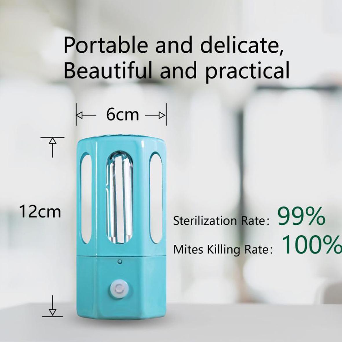 Nhỏ nhẹ tiện lợi diệt khuẩn trong xe ôtô, phòng ngủ, nhà bếp, phòng tắm và các không gian khác trong nhà. Tên sản phẩm: Máy diệt khuẩn không khí mini để bàn Mã sản phẩm : YM-202007 Công suất 3.8W Điện áp định mức: Điện áp sạc DC3.7V  Chức năng: Loại bỏ vi khuẩn trong không khí Nguồn sáng: Tia UV Chất liệu: Kim loại và thạch anh Thiết kế công tắc thông minh   Nhấn nút khởi động 5s,  máy khởi động sau 28s và tự động tắt sau 30 phút  Dung lượng pin lớn 1000mAh, hổ trợ cổng sạc Micro USB.  Thời gian sạc 1.5-2 giờ  Tỷ lệ khử trùng lên tới 99.9%.  Là công cụ chăm sóc sức khỏe cần thiết sử dụng cho phòng ngủ, nhà bếp, phòng tắm và các không gian nhà khác.   LƯU Ý:  Không được để các tia sáng cực tím gần mắt, để tránh gây hại cho mắt Khi đèn khử trùng UV được bật, bạn nên rời khỏi vị trí để tránh ánh sáng tia cực tím tiếp xúc lên mắt và da sẽ gây tổn hại cho da và mắt khi tiếp xúc trực tiếp với tia cực tím quá 5 phút