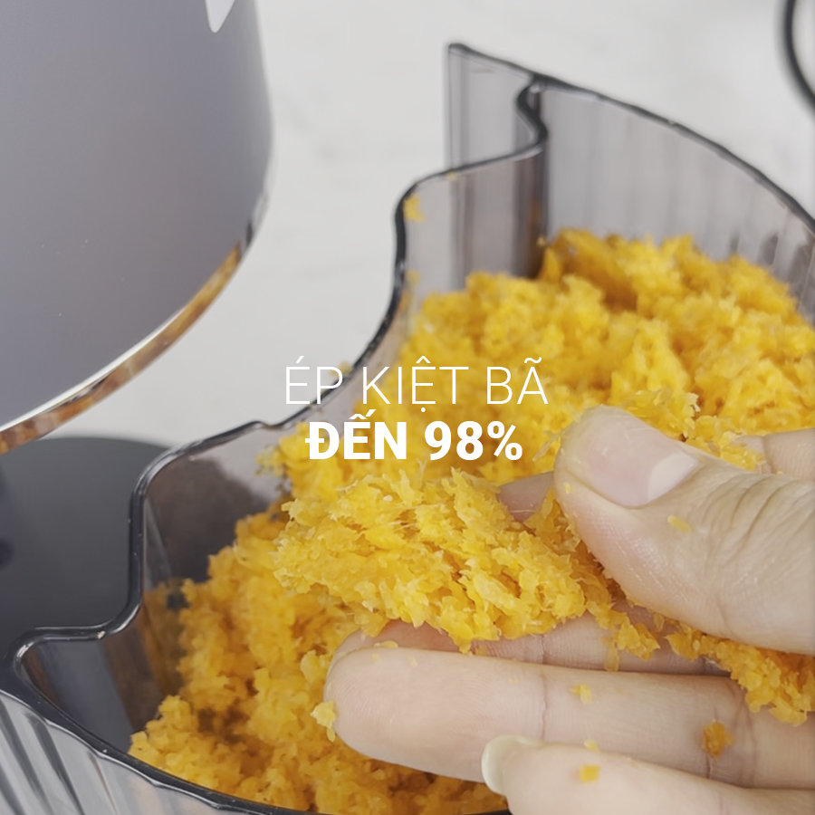 Ép kiệt hơn, giàu Vitamin và nhiều hương vị hơn!   Đường kính khoang ép lớn lên đến 130mm, giúp ép nguyên quả dễ dàng mà không cần cắt nhỏ.  Tốc độ quay chậm chỉ 40