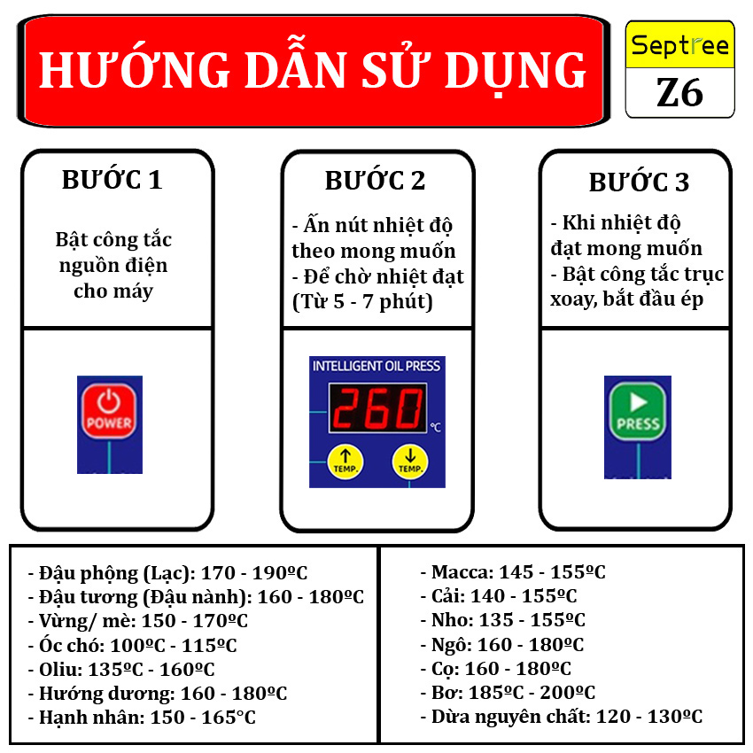 Hướng dẫn sử dụng máy ép dầu thực vật Septree Z6