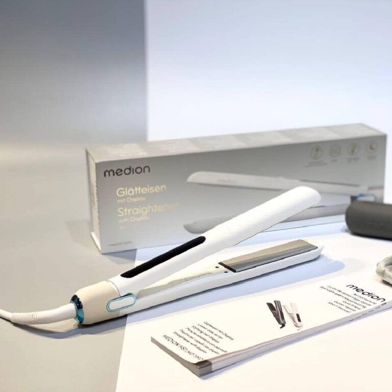 Máy duỗi tóc MEDION LIFE HS1 có màn hình hiển thị nhiệt độ và dây cáp dài (1,80 m) để tạo kiểu tóc linh hoạt. Tạo kiểu tóc riêng: với 5 mức nhiệt có thể