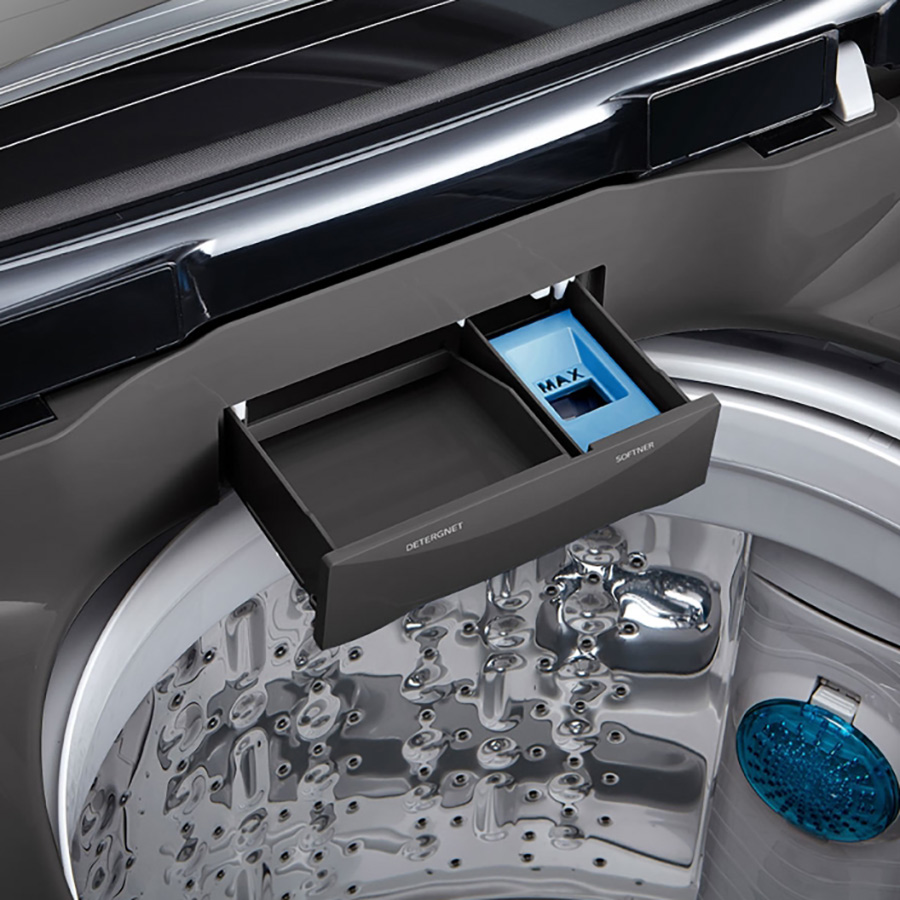 Đặc điểm nổi bật Tự động phân bổ nước giặt xả chính xác theo khối lượng đồ giúp tiết kiệm chất tẩy Ngăn chứa nước giặt xả lớn, chỉ cần đổ đầy 1 lần có
