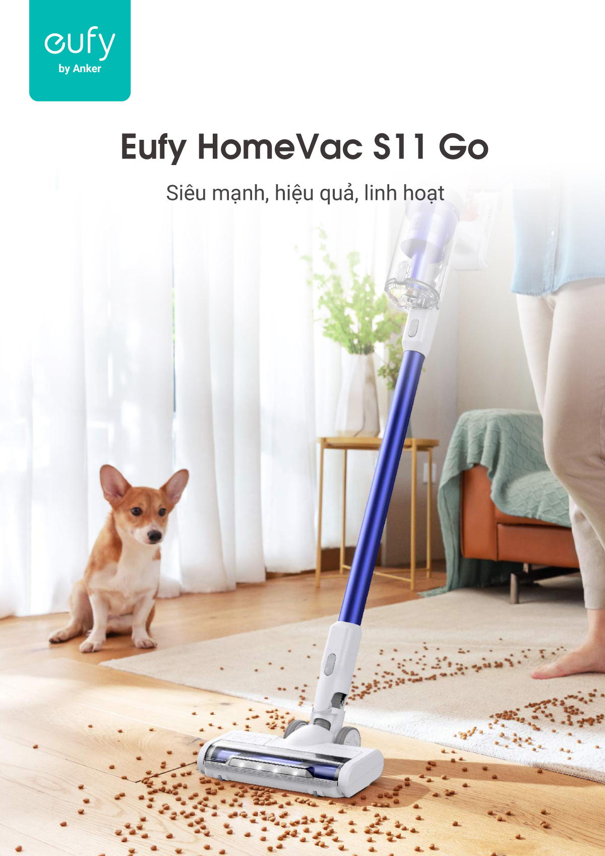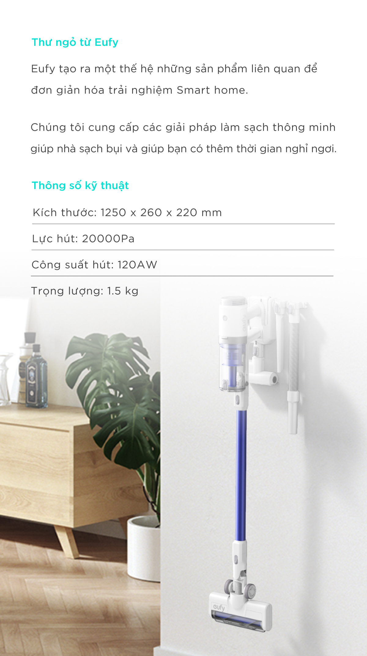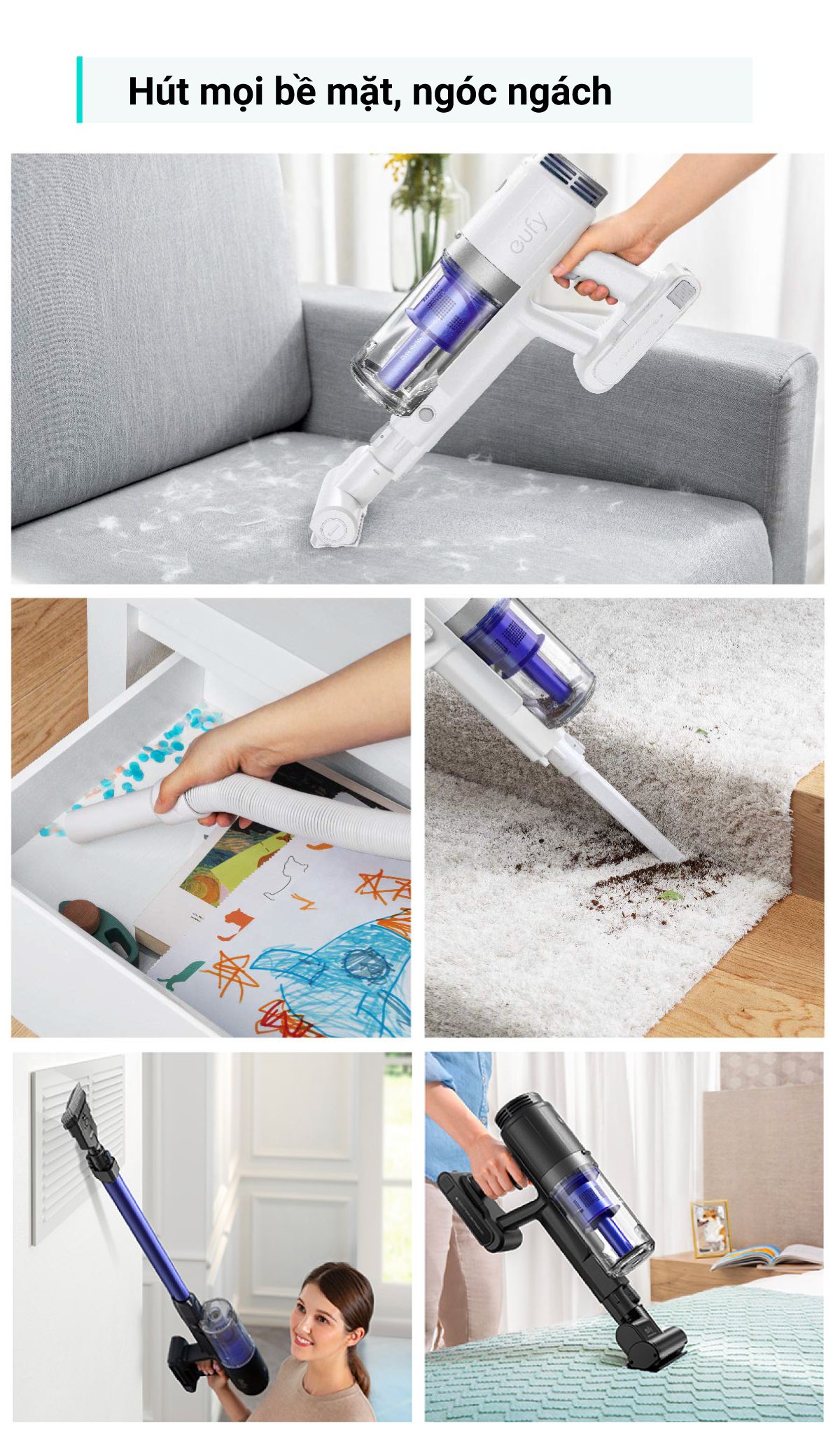 Thiết kế nhẹ, không dây cho phép bạn di chuyển vào các góc và xung quanh đồ nội thất một cách dễ dàng.