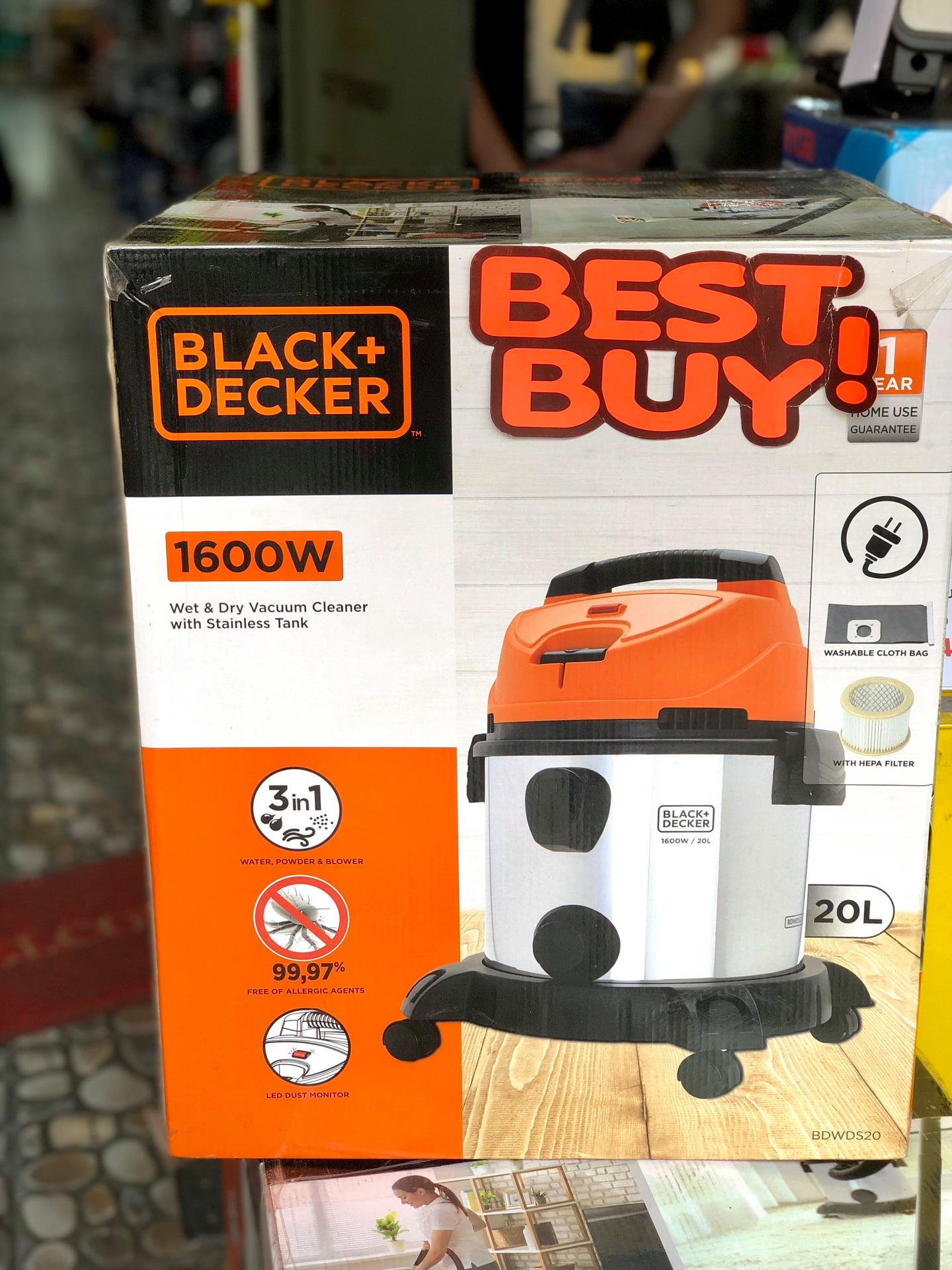 Máy hút bụi khô và ướt Black&Decker BDWDS20-B1 vận hành mạnh mẽ với công suất 1.600W Máy hút bụi Black&Decker BDWDS20-B1 có công suất hút bụi hoạt động ở mức 1.600W, dung tích lớn lên đến 20 lít, thêm vào đó là khả năng hút bụi, hút nước tiện dụng, sẽ là sản phẩm tốt nhất là các cửa hàng, nhà hàng quy mô vừa và nhỏ không nên bỏ qua. Với tính năng tự hút bụi và nước, thì chắc chắn sản phẩm Black&Decker BDWDS20-B1 sẽ giúp bạn tiết kiệm thời gian khi thực hiện công việc vệ sinh hàng ngày trong môi trường văn phòng hay những không gian có diện tích rộng. Máy hút bụi khô và ướt Black&Decker có tính năng chống quá nhiệt nên sử dụng máy bền hơn - bảo hành máy 6 tháng. Với công suất 1.600W và  các công cụ hút bụi đi kèm, sẽ giúp bạn nhanh chóng hút sạch bụi bẩn kể cả ngóc ngách nhỏ hẹp. Bộ lọc siêu vi, máy hút bụi sẽ mang lại bầu không khí trong lành thoáng mát và sạch sẽ hơn. Bộ lọc này có thể giặt sạch nên tái sử dụng được giúp tiết kiệm chi phí cho cửa hàng nhà bạn.  Máy hút bụi khô và ướt Black&Decker BDWDS20-B1 tiện lợi, hút bụi đa chức năng Ưu điểm của máy hút bụi khô và ướt Black&Decker BDWDS20-B1