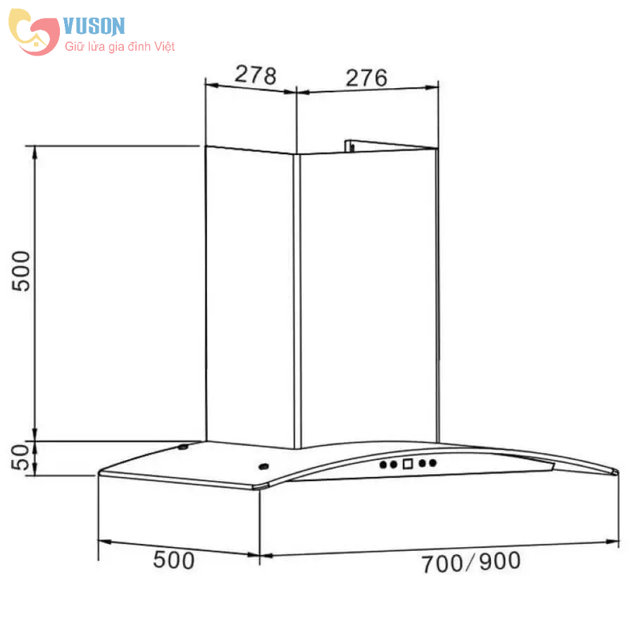Kiểu máy toa kính Điều khiển: cảm ứng 4 tốc độ Khử mùi bằng than hoạt tính Lưới lọc Aluminum 5 lớp Chất liệu: Inox – Kính Công suất động cơ: 198W Kích thước: 900mm