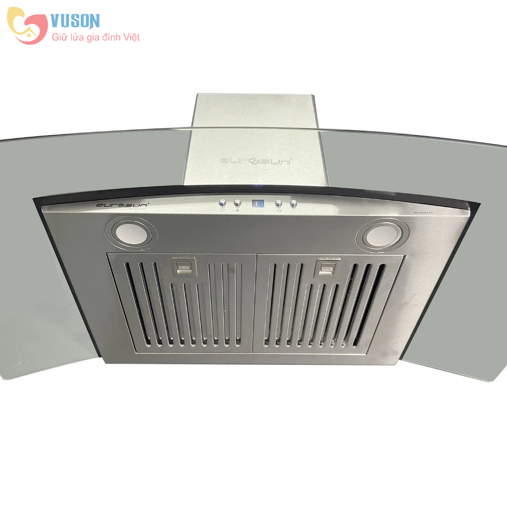 Máy hút mùi Eurosun EH-90K27S là dòng máy hút mùi gắn tường thiết kế dạng kính cong. Thân máy inox kết hợp với kính màu đen dày 6mm tạo lên vẽ đẹp sang trọng hiện đại cho không gian bếp