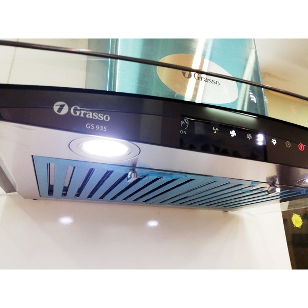 Máy hút mùi là thiết bị nhà bếp quan trọng, nếu khi bếp nấu giúp bạn nấu những bữa cơm ngon thì máy hút mùi sẽ đem lại cho bạn cảm giác thoải mái mỗi khi vào bếp. Máy hút mùi GS 935 với thiết kế hiện đại, sở hữu tính năng cực thông minh sẽ giúp bạn không chỉ loại bỏ được khói mùi nhà bếp hiệu quả mà còn tiện lợi hơn trong quá trình sử dụng. 1/ Những tính năng nổi bật của máy hút mùi GS 935 Máy hút mùi GS 935 được sản xuất theo dây chuyền công nghệ hiện đại với thiết kế đẹp mắt, sang trọng phù hợp với nhiều không gian bếp khác nhau. Thiết kế dạng kính cong phổ biến với kích thước 70 cm đã giúp cho máy hút mùi GS 935 có thể thích hợp với nhiều kích thước bếp từ, nhiều kiểu tủ bếp, đó được xem là một điểm thuận lợi. Bên cạnh đó kiểu thiết kế kính cong sẽ giúp máy dễ dàng gom khói, nhanh chóng loại bỏ khói mùi nhà bếp phát sinh trong quá trình nấu nướng. Điểm đặc biệt nhất mà GS 935 sở hữu không hẳn là một bảng điều khiển phím nhấn cảm ứng thông thường mà chế độ điều khiển thông qua cử chỉ bàn tay cực thông minh. Chuyển động bàn tay của bạn từ trái qua phải bạn có thể dễ dàng bật chiếc máy hút mùi của mình, lặp lại hành động một lần nữa để điều chỉnh công suất lên mức độ cao hơn. Máy hút mùi GS 935 có 3 mức công suất để bạn lựa chọn phù hợp với nhu cầu nấu nướng của mình. Để tắt máy hút mùi bạn chuyển động bàn tay từ phải qua trái, máy hút mùi sẽ vẫn hoạt động và tắt sau 3 phút nữa, biểu tượng đồng hồ nhấp nháy. Chuyển động bàn tay từ phải qua trái một lần nữa để tắt máy hút mù ngay, vừa tiện vừa vui đúng không nào. Bên cạnh thiết kế cực xịn xò thì máy hút mùi GS 935 với mức công suất 1000 m3/h sẽ giúp bạn loại bỏ khói mùi nhà bếp một cách hiệu quả mà độ ồn chỉ dưới 48db. Việc sử dụng lưới inox thanh kiểu baffle cũng giúp người dùng dễ dàng vệ sinh hơn cả mà lại cực kỳ chắc chắn. Đối với lưới lọc bạn nên vệ sinh thường xuyên khi thấy có dầu mỡ bám nhiều trên bề mặt, than hoạt tính nên được thay định kỳ  tháng 1 lần để đảm bảo hiệu quả hoạt động tốt nhất của máy. 2/ Những lưu ý khi sử dụng máy hút mùi GS 935 Để sử dụng máy hút mùi GS 935 hiệu quả và an toàn các bạn cần lưu ý một số điểm sau đây:
