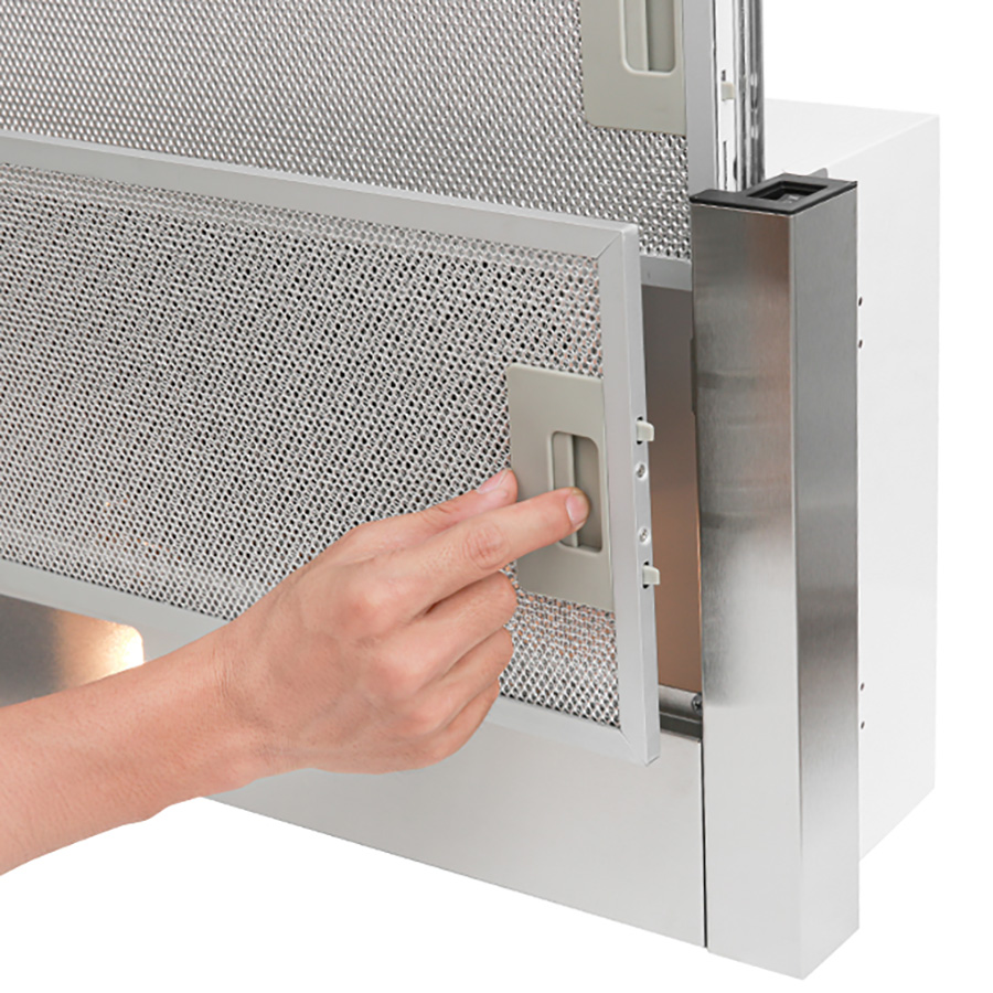 Máy hút mùi được trang bị tấm lưới lọc bằng nhôm thông thoáng và chắc chắn cho bạn dễ dàng tháo lắp khiến việc vệ sinh trở nên nhanh chóng và đơn giản. Bạn ngâm nước nóng cho tan bớt dầu mỡ sau đó đánh rửa bằng các chất tẩy thông thường. Bên cạnh đó còn giúp bảo vệ động cơ máy bên trong, nâng cao tuổi thọ sản phẩm.
