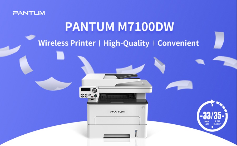 Máy in laser đa chức năng PANTUM M7100DW Chức năng: In đảo mặt, Sao chép, Quét Khổ giấy: A4; Mực: Đen trắng; Tốc độ in: 33ppm; Copy: 33ppm, Scan: 24ppm, trang đầu in ≤ 8.2 giây Độ phân giải: In - 1200x1200; Copy: 600x600, Scan (Flatbed): 1200x1200 Bộ nhớ: 256MB; Bộ xử lý: 525MHz; Bảng điều kiển: LCD Khay đựng giấy: 250 tờ & Khay đa năng: 1 tờ Khay nạp giấy tự động ADF: Có (Scan 1 mặt); NFC: Có Giao tiếp: USB, Ethernet (10/100), Wifi; Chức năng Copy: D copy, Receipt copy, N-up copy, Clone copy, Poster copy, Manual duplex copy, Collated copy; PC, FTP, Toner cartridge theo máy: 1.500 trang A4 Đô phủ 5% ; Toner Cartridge chính hãng: TL-410 1.500 trang A4 Đô phủ 5%; TL-410H 3.000 trang A4 Đô phủ 5%; TL- 410X 6.000 trang A4 Đô phủ 5%, Drum: DL-410 (12.000 trang).