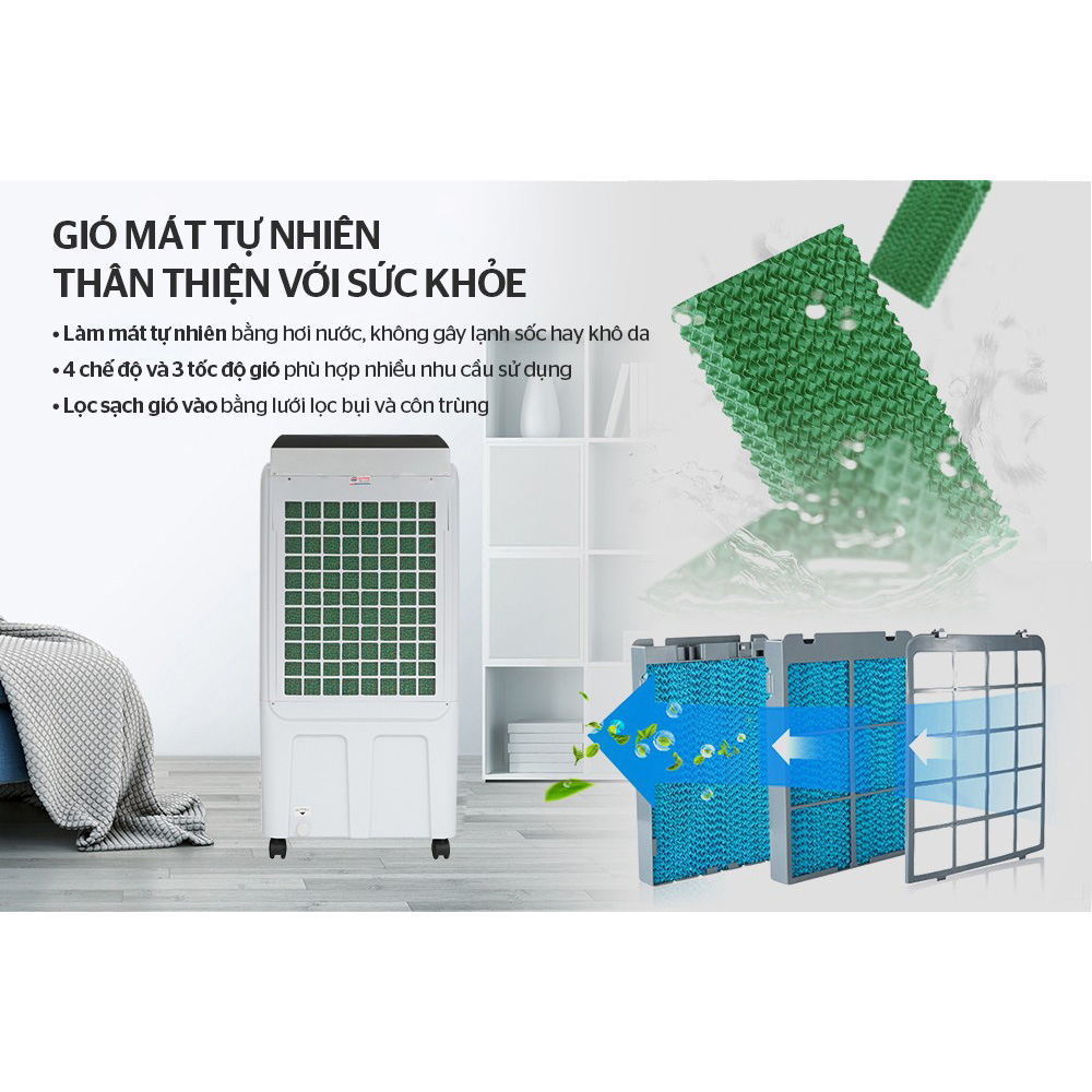 THÔNG TIN SẢN PHẨM - Được thiết kế với công nghệ tiên tiến, quạt điều hòa hơi nước sử dụng màng lọc và hơi nước để tạo ra không khí mát mẻ và trong lành