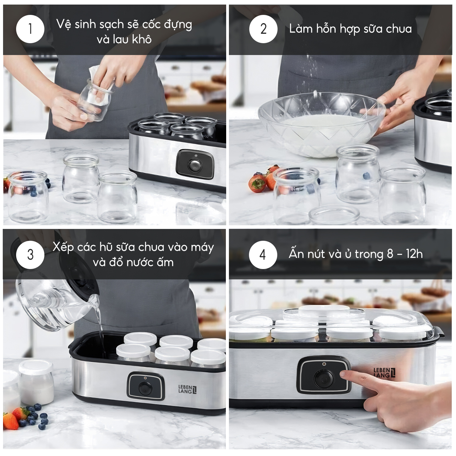 Máy làm sữa chua Lebenlang LBL9139, công suất 20W, dung tích 180ml, gồm 8 lọ thủy tinh, bảo hành 2 năm - hàng chính hãng 6 LÝ DO NÊN CHỌN MÁY LÀM SỮA CHUA CỦA LEBENLANG