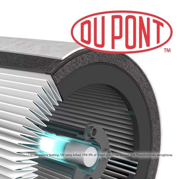 • Bộ lọc DuPont HEPA 360 độ thu giữ các chất ô nhiễm và khí / mùi VOC từ mọihướng. Ánh sáng tia cực tím giết chết vi trùng và vi khuẩn có thể bị mắc kẹt trong bộ lọc.