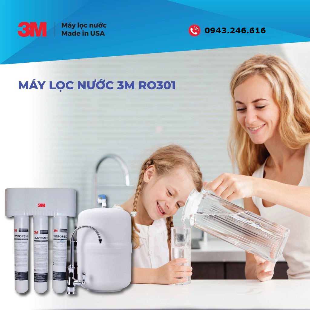 ✨Máy lọc nước 3M RO 301 kèm vòi - Hàng nhập khẩu - Công suất cao, không điện