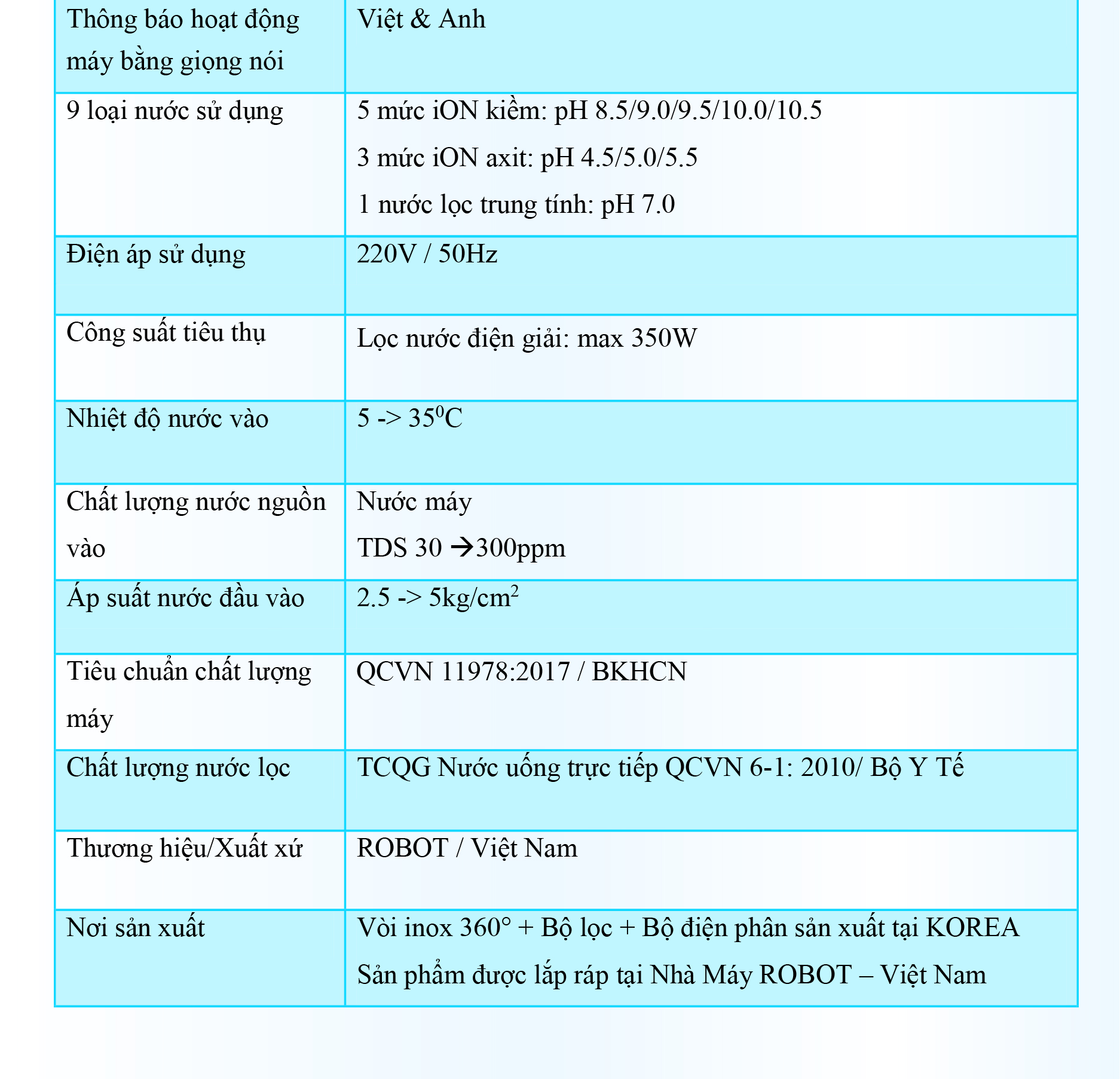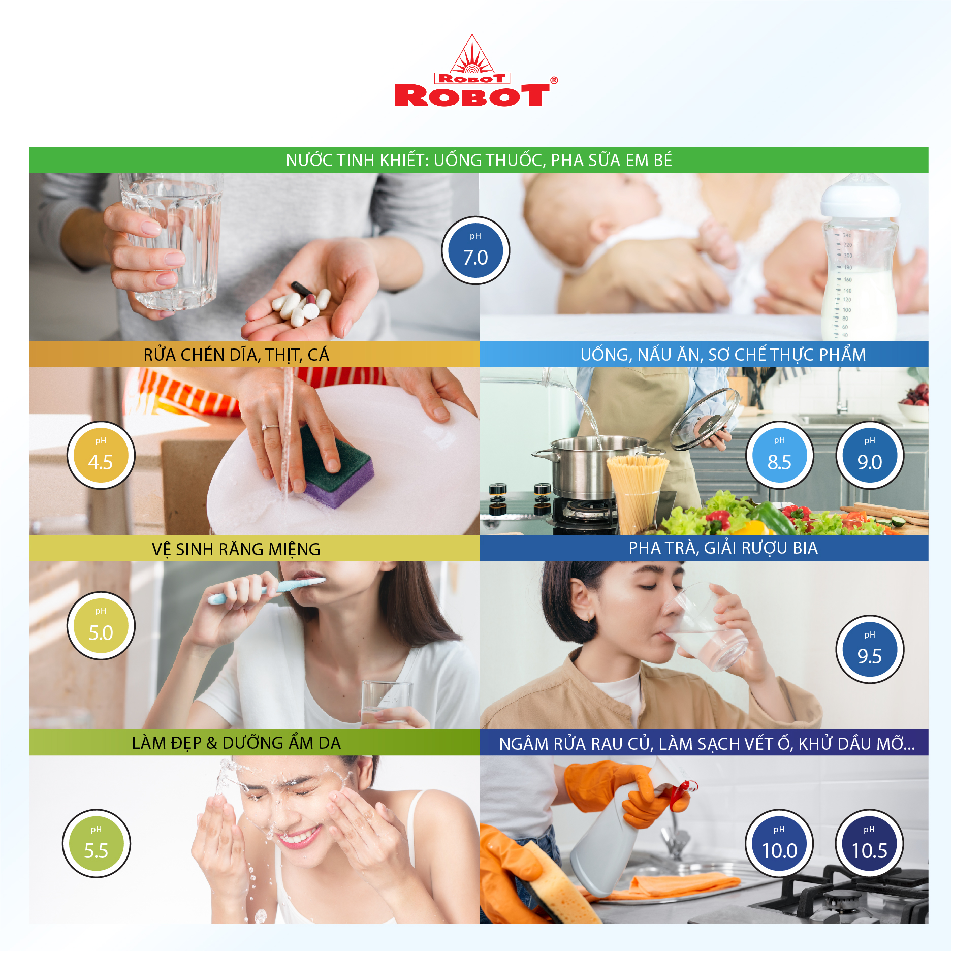 ️ Máy lọc nước điện giải iON kiềm ROBOT ionPrince 79 là sản phẩm được sản xuất với công nghệ tiên tiến, cao cấp trang bị đến 7 tấm điện cực lớn nhất, có khả năng tạo ra đến 9 loại nước đa chức năng, với 5 mức nước iON kiềm (pH 8.5 – 10.5), nước lọc trung tính (pH 7.0) & 3 mức nước iON axit (pH 4.5 - 5.5). Chất lượng nước đạt chỉ số tối ưu, nồng độ Hydro hoạt tính lên đến ~800 -> 950 ppb, chống oxy hóa (ORP) lên đến ~ -400 -> -600 mV, đáp ứng mọi nhu cầu sử dụng trong cuộc sống.