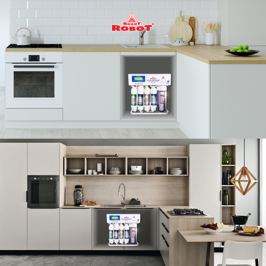 • Tích hợp màn hình LCD được đặt trực tiếp trên thân máy, dễ dàng quan sát và theo dõi chất lượng nước lọc.   Máy lọc nước ROBOT Thế hệ mới nhỏ gọn bậc nhất, thuận tiện treo tường hoặc để gầm tiết kiệm tối đa không gian