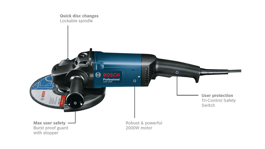 - Máy mài góc 2000W Bosch. GWS 2000-180 được cấu tạo từ chất liệu nhựa cao cấp và hợp kim bền bỉ, khả năng va đập và làm việc được trong môi trường khắc nghiệt. Máy có công suất hoạt động mạnh mẽ với công suất lên tới 2.000W. Chức năng chính là để loại bỏ các phần còn sót lại của các chi tiết sau các quá trình gia công khác.