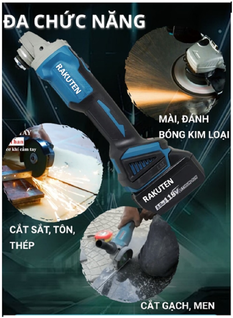 Máy mài góc dùng pin 118V RAKUTEN không chổi than