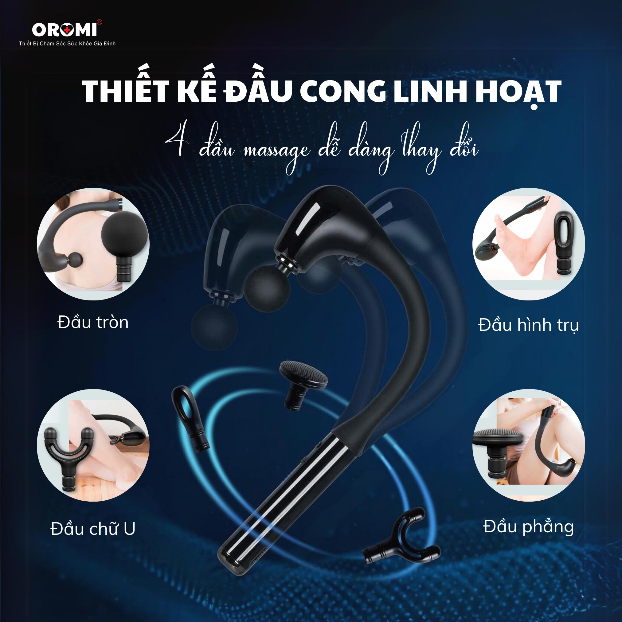 MÁY MASSAGE TOÀN THÂN OROMI ORM-001 THẾ HỆ MỚI - 4 ĐẦU MÁT-XA CẦM TAY MÔ SÂU CHUYÊN NGHIỆP ĐA NĂNG Máy massage ORM-001 toàn thân 4 đầu tích hợp phân tán lực rung rộng