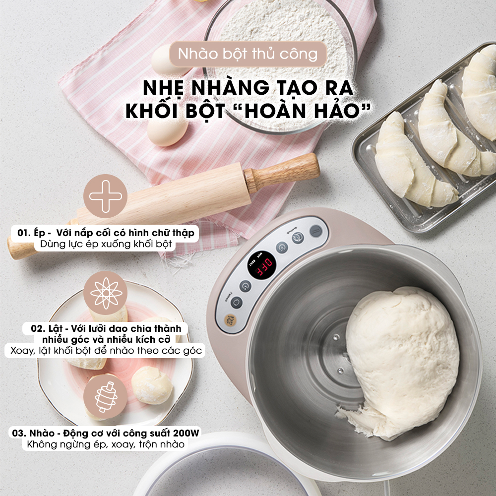 Máy nhồi trộn bột Bear 7L nhào bột, ủ bột tự động, âu trộn thép không gỉ – Hàng chính hãng bảo hành 18 tháng 6 Lý do nên mua MÁY NHỒI TRỘN BỘT BEAR