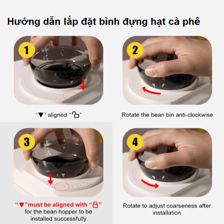 - Bộ phụ kiện bao gồm: 1 máy chủ; 1 tay pha 51mm ; x2 phin lọc inox ; 1 tay nén kiêm thìa; 1 thổi bột cà phê; 1 sách HDSD