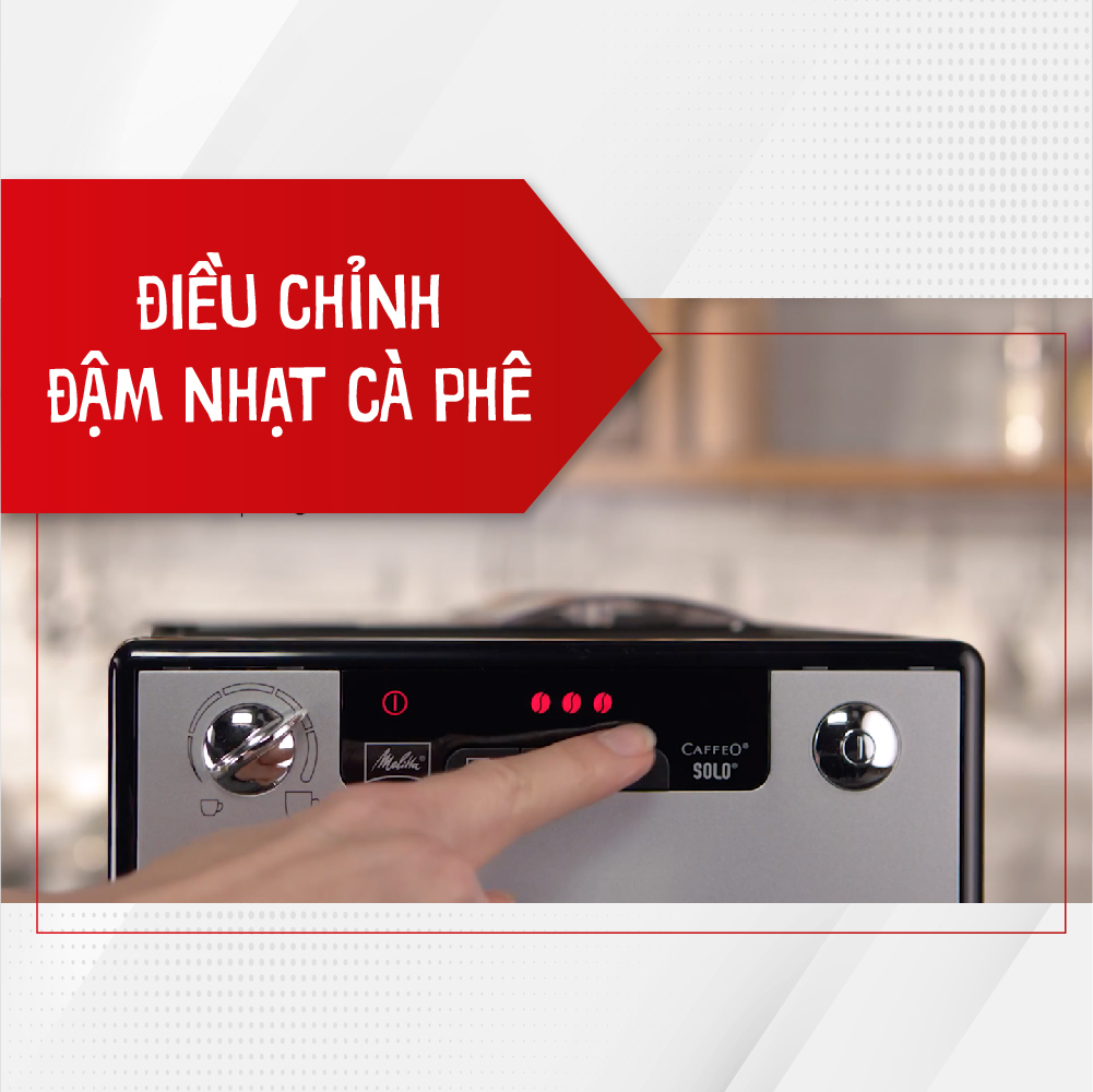 Máy pha cà phê tự động Melitta Solo Tập trung vào sự đơn giản - Đó chính là Solo. Với thiết kế đơn giản, kích thước nhỏ gọn, dễ sử dụng, Caffeo Solo mang đến niềm đam mê từ những hạt cà phê tinh chất đến lớp crema mềm mại tan chảy trên đầu lưỡi.       Đơn giản & Nhỏ gọn Máy pha cà phê espresso nhỏ gọn nhất. Với chiều rộng chỉ 20 cm, Caffeo Solo tuy tiết kiệm diện tích nhưng vẫn đủ chỗ cho công nghệ Melitta chất lượng cao. Hệ thống chiết xuất Aroma (A.E.S) Tính năng Pre-Brewing giúp trải nghiệm hương vị cafe tốt nhất: Cafe sau khi xay được ủ trước khi chiết xuất, giúp khơi dậy những hương vị của cà phê. Chế độ tách đôi Khả năng pha được 2 tách cafe hoặc espresso cùng một lúc với chỉ một nút nhấn. Chiều cao vòi chiết xuất có thể điều chỉnh Dù một hoặc hai tách, cốc hay ly thuỷ tinh, vòi chiết xuất cà phê của máy có thể điều chỉnh độ cao tối đa 135mm   Sử dụng dễ dàng Bảng điều khiển trực quan tích hợp biểu tượng đèn LED được đơn giản hoá tối đa, giúp sử dụng dễ dàng. App Melitta Companion Ứng dụng miễn phí hỗ trợ bạn vận hành máy pha cà phê hoàn toàn tự động. Cho dù là hướng dẫn thực tế, thông tin thú vị về cách thưởng thức cà phê hay các chức năng dịch vụ tiện lợi: Chỉ cần tải xuống ứng dụng và khám phá vô vàn tính năng! Dễ dàng vệ sinh và bảo dưỡng Bộ phận nén dễ dàng tháo rời và vệ sinh bằng nước. Bộ phận máy bên trong có thể vệ sinh bằng vải mềm. Ngoài ra thiết bị sẽ tự động báo nếu cần vệ sinh hay bảo dưỡng. Chương trình làm sạch và tẩy cặn tự động Máy pha cà phê hoàn toàn tự động Melitta tự động thông báo cho bạn qua màn hình khi thiết bị cần được làm sạch, tẩy cặn hoặc bảo dưỡng. Độ đậm của cà phê có thể tùy chỉnh Một tách cafe thật đậm vào buổi sáng, nhưng lại chỉ muốn 1 tách nhẹ nhàng vào chiều tối? Giống như ý bạn muốn – cường độ của cà phê rất dễ điều chỉnh theo khẩu vị hiện tại của bạn từ nhẹ đến trung bình đến mạnh. Bạn có thể điều chỉnh lượng cà phê, thêm vào bớt ra chính xác theo cách của bạ Có thể điều chỉnh độ mịn với 5 cấp độ xay Cà phê theo cách bạn muốn – mới xay từ cafe nguyên hạt. Chức năng tiết kiệm năng lượng Máy pha cà phê Melitta Solo có chế độ tiết kiệm năng lượng có thể lập trình và chức năng tự động tắt tiện lợi. Điều này sẽ cho phép bạn xác định khi nào máy pha cà phê của bạn tự động tắt. Ngoài ra, bạn cũng có thể ngắt kết nối thiết bị theo cách thủ công thông qua công tắc 0 watt. Công nghệ lọc nước Pro Aqua Khi sử dụng máy kèm lọc nước Melitta Pro Aqua, thiết bị chỉ cần được tẩy cặn mỗi năm một lần. Nước lọc không chỉ cải thiện chất lượng và hương vị cà phê mà còn ngăn ngừa cặn vôi trong chu trình nước. (Đặc điểm kỹ thuật dựa trên lượng rót đầy cốc 120 ml, với 6 lần phân phối mỗi ngày và 6 bộ lọc thay thế theo thông số kỹ thuật của thiết bị.) Thiết bị lọc nước Chúng tôi tin rằng bạn có thể nếm thử và cảm nhận: máy pha cà phê hoàn toàn tự động Melitta Avanza có thể được vận hành với bộ lọc nước Melitta Pro Aqua. Điều này có nghĩa là nước được lọc mới trước mỗi lần sử dụng. Hãy dùng thử và thưởng thức trọn vẹn hương vị không pha trộn của cafe. Bên cạnh đó, bộ lọc nước sẽ hỗ trợ máy của bạn trong việc bảo vệ máy pha cà phê chống lại sự vôi hóa. Sứ mệnh chăm sóc hệ sinh thái Chúng tôi đã xây dựng một hệ thống giá trị riêng và phát triển một nhãn hàng trực tiếp giúp người dùng trong việc lựa chọn thiết bị đảm bảo ý thức với môi trường. THÔNG SỐ KỸ THUẬT: Máy pha cà phê tự động Melitta Caffeo Solo