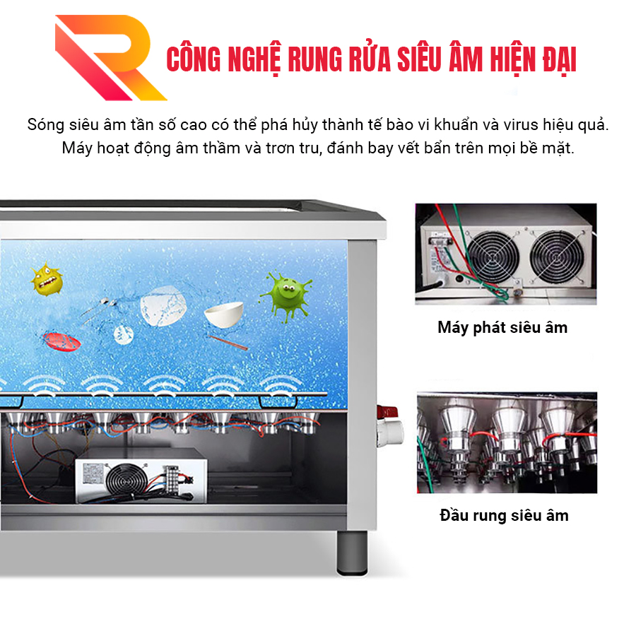 Bể rửa bát siêu âm Rama RB1000 là dòng máy rửa chén sóng siêu âm công nghiệp thuộc phân khúc giá rẻ, dung tích tầm trung, sở hữu đầy đủ những ưu điểm nổi bật của máy