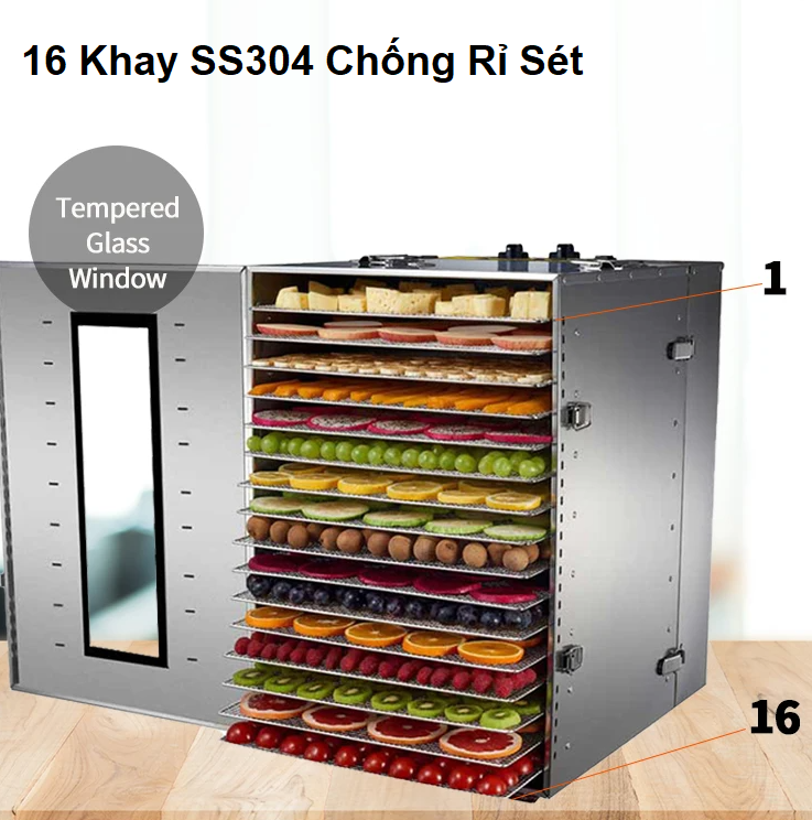 - Máy sấy thực phẩm inox HTG-ST02 16 khay - Hàng Chính Hãng - Sấy khô mọi thực phẩm, đảm bảo giữ hương vị nguyên chất Đặc điểm sản phẩm - Sử dụng sấy khô