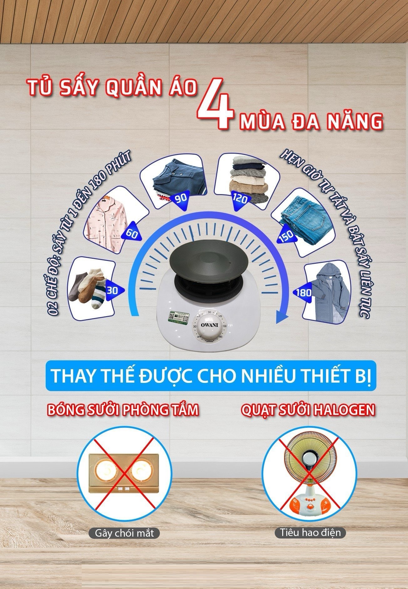 Điểm nổi bật Công suất 1500W, 2 tầng Công nghệ sưởi sấy PTC CERAMIC Đa chức năng sấy khô, sưởi ấm, tủ đựng quần áo Bộ phân tản nhiệt thiết kế 360 độ giúp giúp