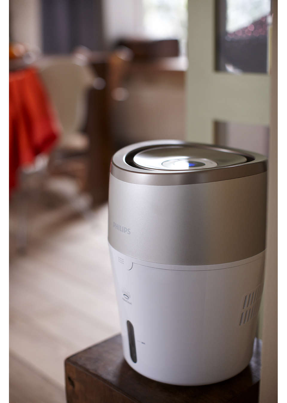 - Những hạt nước với kích cỡ nano nhờ công nghệ xông hơi NanoCloud sẽ giúp giảm đi 99% vi khuẩn trong phòng. -️ Không khí ẩm được phân bổ 360 độ đồng đều và khắp căn phòng. -️ Máy làm ẩm của Philips cho phép bạn lựa chọn độ ẩm từ 40, 50 và 60% cho sự thoải mái tối đa. -️ Chế độ tự động sử dụng cảm biến số để liên tục theo dõi độ ẩm. Nó điều chỉnh việc tạo độ ẩm lên và xuống khi cần thiết, đảm bảo độ ẩm luôn ở chế độ đã được chọn trước. - Đèn báo màu đỏ cho bạn biết bồn chứa nước cần được làm đầy. -️ Khi bồn chứa nước cạn, máy sẽ tự động tắt. -️ Chức năng hẹn giờ: 1/4/8 tiếng. Khi kết thúc thời gian hẹn giờ máy sẽ tự động tắt. -️ Chế độ ngủ ban đêm đảm bảo cho bạn không bị làm phiền bởi tiếng ồn của máy. Máy sẽ hoạt động với độ ồn tối thiểu, tất cả các đèn báo đều tắt ngoại trừ đèn báo tốc độ. -️ Có 3 chế độ lựa chọn tốc độ làm ẩm: thấp, bình thường và nhanh.
