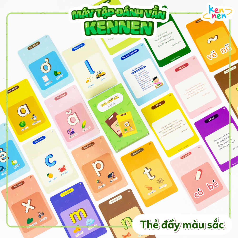 Trẻ cà thẻ để học chữ cái, trẻ cà 2 thẻ một lúc để học đánh vần – kèm ví dụ giải thích từ vựng? 4 tính năng, trăm lợi ích trong một bộ sản phẩm?