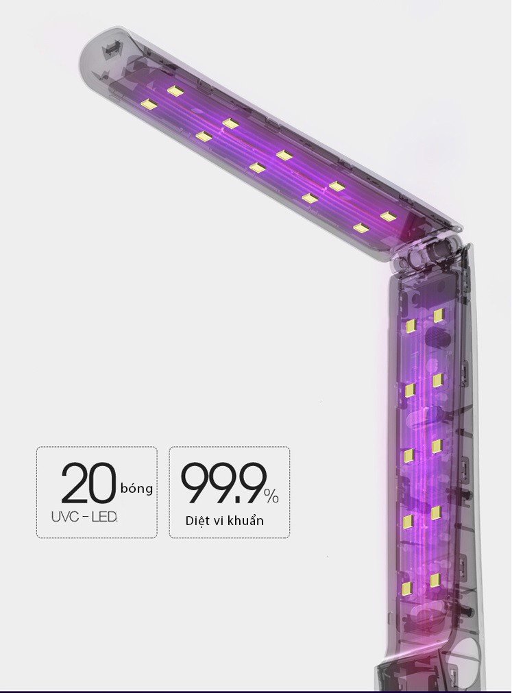 Với 20 bóng đèn LED được sắp xếp dày đặt đảm bảo việc khử trùng trở nên nhanh chóng và hiệu quả. Các tia cực tím được phát ra từ chip đèn tiêu diệt tế bào ADN của vi khuẩn bằng các tác nhân vật lý. Không sản sinh nhiệt, không độc hại, không làm biến dạng vật dụng.