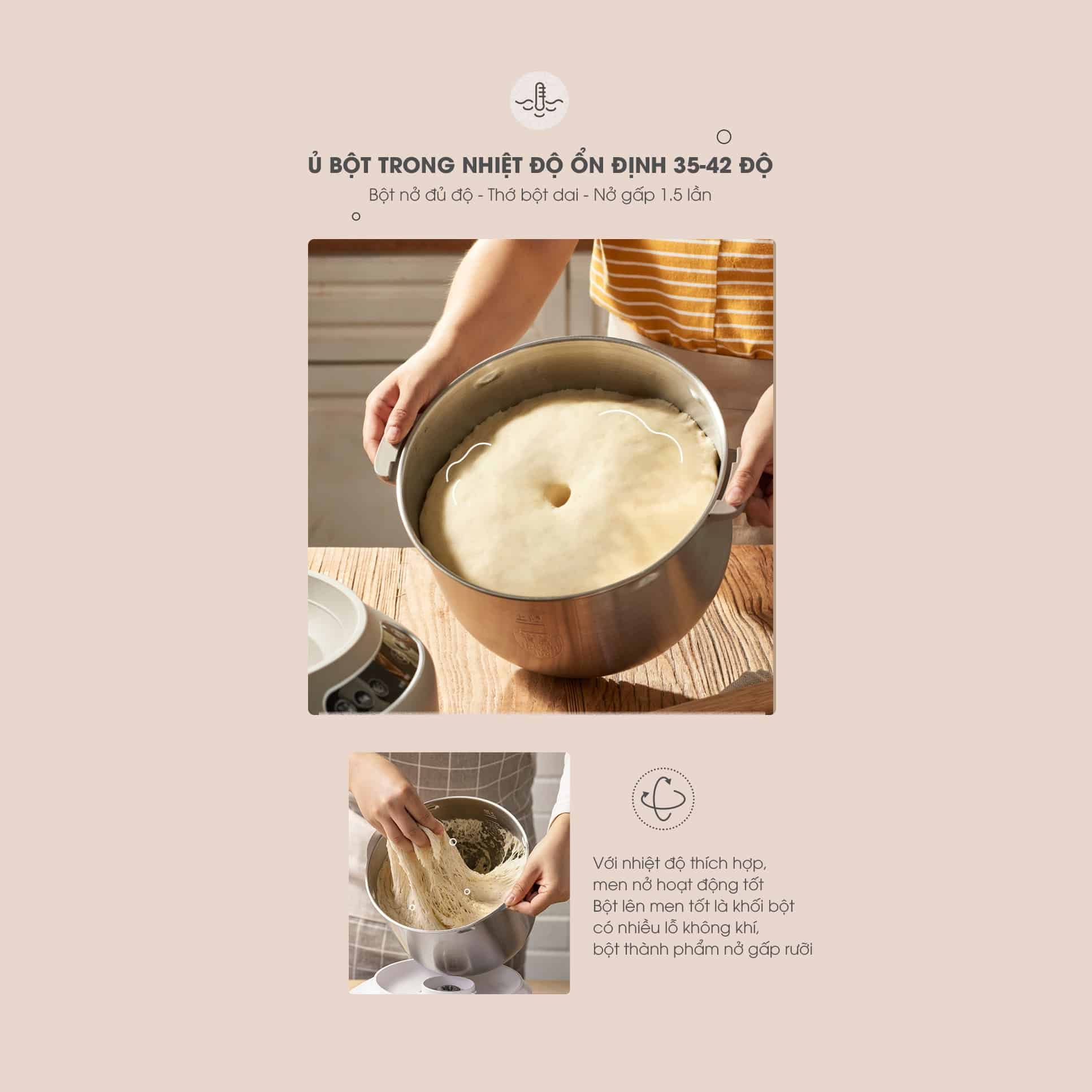 - Cài đặt điều khiển và hẹn giờ PCB, chức năng tạo nhiệt độ ủ bột: 35-40℃