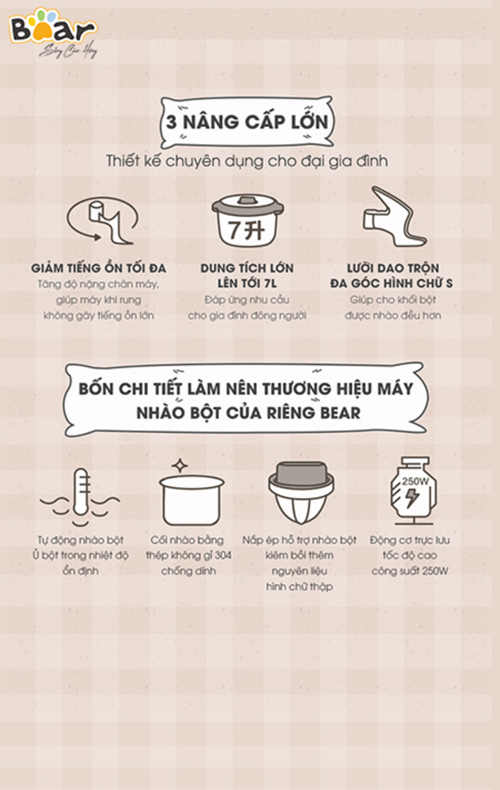 Máy nhồi trộn bột Bear 7L nhào bột, ủ bột tự động, âu trộn thép không gỉ – Hàng chính hãng bảo hành 18 tháng 6 Lý do nên mua MÁY NHỒI TRỘN BỘT BEAR
