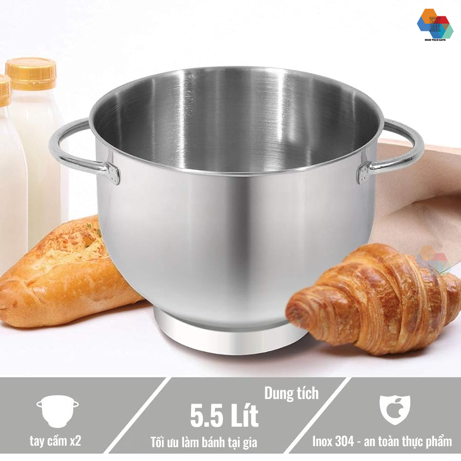 Dung tích lớn 5.5 Lít, tối ưu cho việc làm bánh.