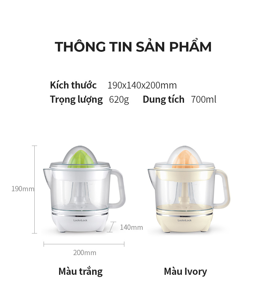 Mua tại TiktokMáy Vắt Cam Lock&Lock 700ml màu trắng ngà EJJ231IVY - Hàng Chính Hãng, Xoay Ép 2 Chiều Cho Nhiều Nước Cam, Bảo Hành 24 Tháng - JoyMall THÔNG TIN CHUNG