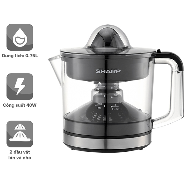 Máy vắt cam Sharp thiết kế gọn nhẹ, màu trắng sáng tươi trẻ, có tay cầm chắc chắn Chuyên dụng để vắt các loại hoa quả họ cam như cam, bưởi, quýt, chanh,… đáp ứng nhu