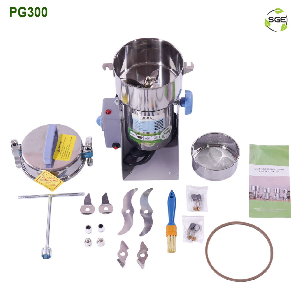 - Bảo hành chính hãng 2 năm MÁY XAY BỘT MỊN / MÁY XAY THẢO DƯỢC PG Máy xay bột mịn hay máy xay thảo dược PG hiệu quả cao đáp ứng nhu cầu chế biến tăng giá trị sản phẩm, có thể xay nhiều loại thảo dược, gia vị, thuốc hoặc hóa chất thành bột mịn dễ dàng. Động cơ mạnh mẽ đạt tiêu chuẩn có thể tạo ra năng suất lớn trong 5 – 10 giây nên phù hợp với các mô hình kinh doanh từ nhỏ cho đến cấp độ công nghiệp. THÔNG SÓ VÀ KÍCH THƯỚC MÁY Có 6 cỡ máy cho bạn lựa chọn, từ 150 gram/lần – 4,5 kg/lần ĐẶC ĐIỂM CỦA MÁY XAY BỘT MỊN PG ĐỘNG CƠ BẰNG ĐỒNG NGUYÊN CHẤT 100% Động cơ là trái tim của máy xay thảo dược. Động cơ mạnh mẽ 4.500W có thể xay được nhiều loại vật liệu khác nhau một cách nhanh chóng. Tiết kiệm năng lượng và thời gian khi làm việc. Có thể sử dụng liên tục TIẾT KIỆM THỜI GIAN Xay nhanh chóng, không cần chờ lâu. Chỉ cần 15 giây nghiền nguyên liệu thành bột mịn MÁY XAY BỘT MỊN XAY ĐƯỢC NHỮNG GÌ? Máy xay bột thảo dược hiệu quả cao đáp ứng nhu cầu xay nhanh, đều và nhuyễn. Giúp tăng giá trị sản phẩm. Dễ dàng nghiền nhiều loại thảo mộc, gia vị, thuốc hoặc hóa chất thành bột mịn. ĐI KÈM LÀ LƯỠI DAO KÉP Lưỡi dao kép quay với tốc độ 32.000 vòng/phút, biến thành bột mịn trong chớp mắt, đáp ứng mọi nhu cầu sử dụng. Xay mịn theo ý muốn MÁY CÓ THỂ XOAY 270 ĐỘ Máy có thể xoay 270 độ, việc rót vào cối chứa rất dễ dàng và thuận tiện. ĐẶT THỜI GIAN NHƯ MONG MUỐN Xoay núm để cài đặt thời gian làm việc từ 0 – 5 phút. Bạn chỉ nên nhấn và giữ công tắc trong 7-8 giây và nghỉ trong 2-3 giây. Lặp lại chu trình này sẽ khiến nguyên liệu thô rất mịn. CÓ HỆ THỐNG AN TOÀN Có hệ thống nắp vặn bằng vít. chặt chẽ để đảm bảo an toàn TIÊU CHUẨN FOOD GRADE Chất lượng sản phẩm đảm bảo đạt tiêu chuẩn Máy được làm từ inox 304 chắc chắn, bền bỉ, không mềm, không có cặn trong nguyên liệu. Có thể sử dụng lâu dài GALLERY +++ LƯU Ý: MÁY PG-150 QUÀ TẶNG KÈM THEO LÀ BỘ DAO, CHỔI THAN ( KHÔNG KÈM RAY BỘT) NHƯ CÁC DÒNG SIZE LỚN