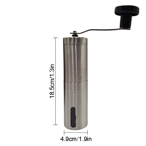 Máy xay cà phê cầm tay có thiết kết đẹp và tinh gọn, bình thân máy bằng INOX, có kính để nhìn thấy bột cà phê trong lúc xay. Cho bạn tận hưởng sự thú vị của việc xay cà phê.