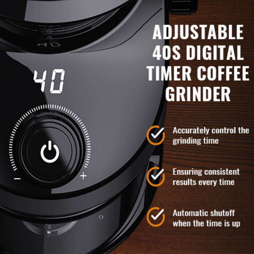 - Định lượng cà phê bột: Cài đặt thời gian xay 40 giây