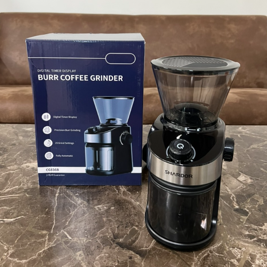 Máy xay hạt cà phê cao cấp thương hiệu Shardor CG836B công suất 150W tích hợp 25 chế độ xay - Hàng Chính Hãng Tiếp nối thành công phiên bản Máy xay hạt cà phê