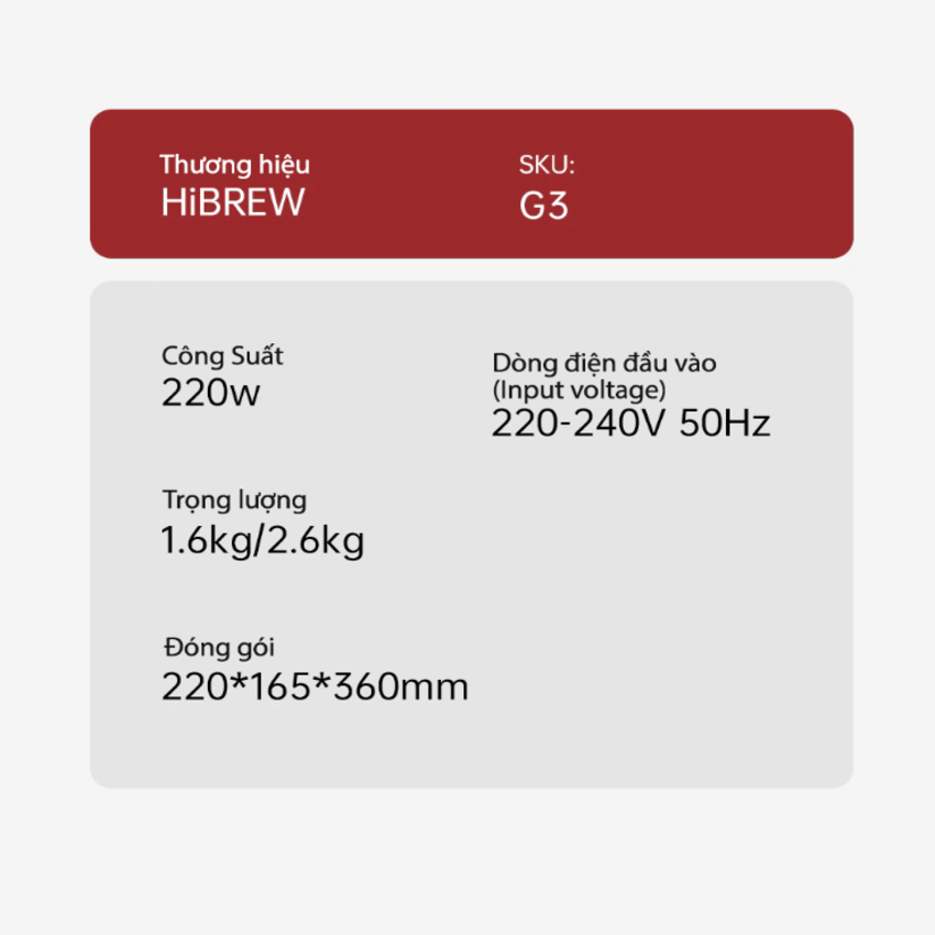Máy xay hạt cà phê tự động tích hợp 34 chế độ xay thương hiệu HiBREW G3 công suất 220W - Hàng Chính Hãng Hiện nay, cà phê là thức uống không thể thiếu của nhiều người, nhưng làm sao để thưởng thức được ly cà phê thơm ngon do chính tay mình làm. Giới thiệu máy xay hạt cà phê HiBREW G3 tự động, tích hợp 34 chế độ xay, chống vón cục tĩnh điện đặc biệt. Bạn sẽ dễ dàng thưởng thức những tách cà phê thơm ngon, chỉ mất vài phút cùng thao tác đơn giản, máy sẽ nhanh chóng nghiền hạt cà phê thành bột mịn theo đúng sở thích của bạn. Máy xay hạt cà phê HiBREW G3 được thiết kế sang trọng, hiện đại, máy nhỏ gọn và tinh tế sẽ đáp ứng được nhu cầu của các hộ gia đình, quán cà phê nhỏ hay cho văn phòng. Chức năng điều chỉnh độ mịn cà phê