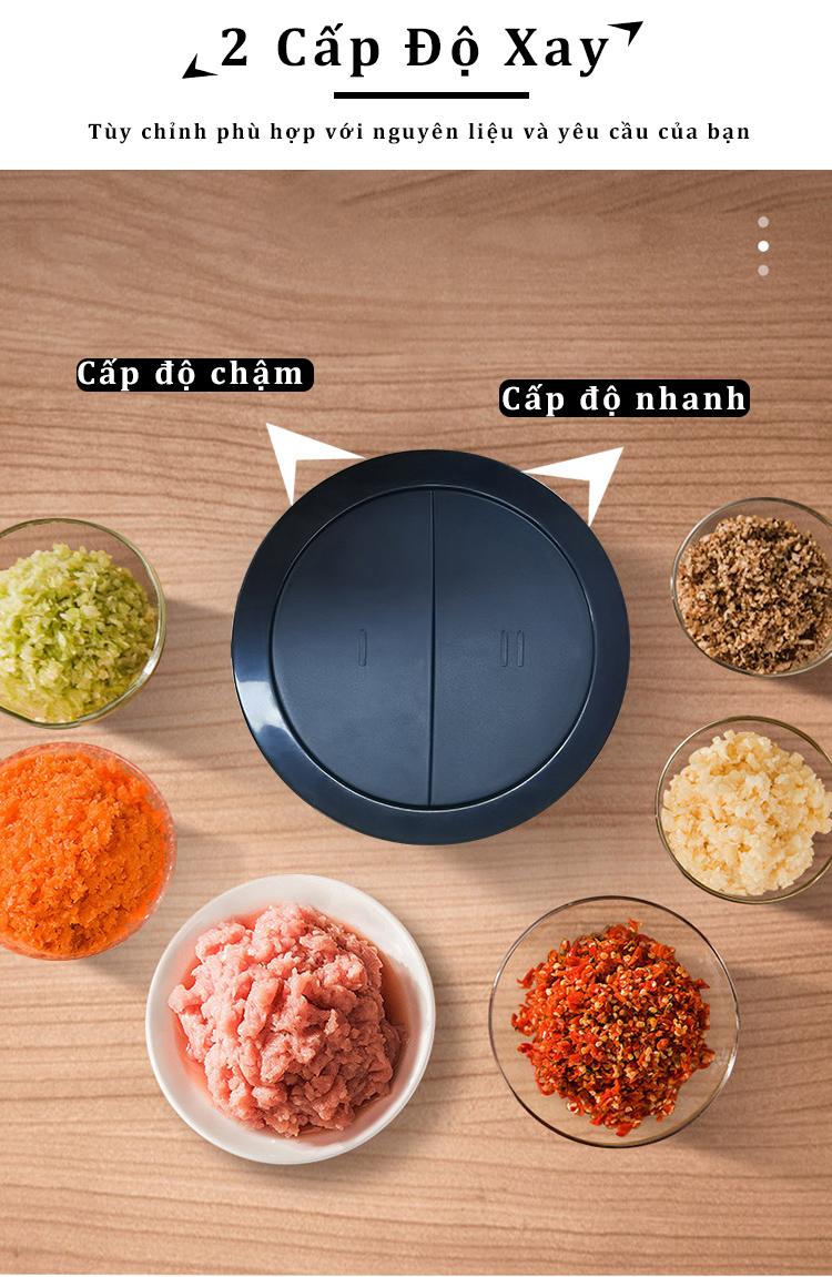 - Công suất 220V-50Hz/ 500W/ 1.2L - Xay được tất cả các loại thịt: bò, heo, tôm, cua, cá,ác loại hạt, đậu, trái cây, đồ khô mề - Nắp nhựa an toàn, lưỡi dao bằng