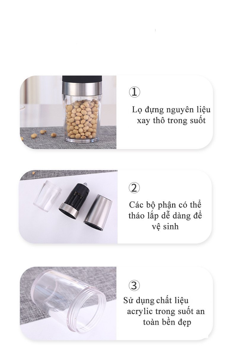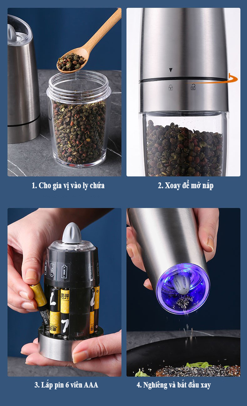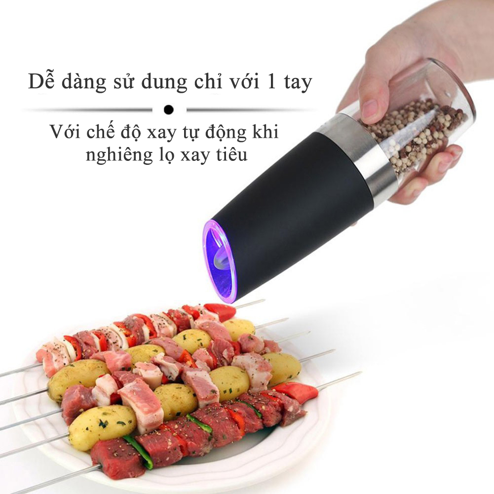 Máy Xay Tiêu Cầm Tay Tự Động Chạy Pin Kunbe - Cối Xay Hạt Gia Vị Có Đèn Led, Lõi Mài Gốm Ceramic Cao Cấp, Tiện Dụng