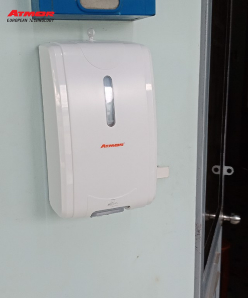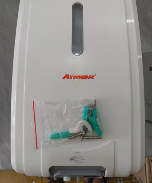 - Giới thiệu máy xịt cồn cảm ứng treo tường AT-007R (Dùng điện) Máy xịt cồn cảm ứng tự động (treo tường) ATMOR – AT-007R là dòng sản phẩm thiết bị cảm ứng chuyên dụng cho các khu công cộng như: Khu công nghiệp, bệnh viện, trung tâm y tế, công ty sản xuất thực phẩm, các văn phòng công ty, trung tâm mua sắm lớn,… Sản phẩm luôn mang lại sự an toàn nhất định với công nghệ cảm ứng không cần chạm tay vào máy để hạn chế lây nhiễm những bệnh truyền nhiễm. THÔNG SỐ CHI TIẾT CỦA MÁY XỊT CỒN CẢM ỨNG Hãng sản xuất ATMOR (Thái Lan) Tên sản phẩm Máy xịt cồn cảm ứng Kích thước AT-007R Nguồn điện AC 220V Dung tích 2000ml Hệ thống phun sương vừa đủ 0.5~6ml Chất liệu Nhựa ABS Màu sắc Màu trắng Bảo hành 12 tháng Vì sao nên chọn máy xịt cồn cảm ứng treo tường AT-007R (Dùng điện)?