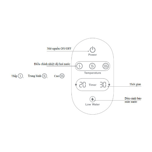 Nhiệt độ hơi nước có thể điều chỉnh ở 3 mức: