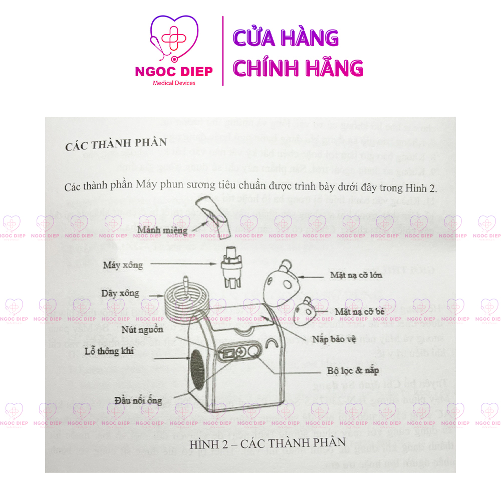 - Phụ kiện đi kèm: 1 cốc xông, 2 mặt nạ người lớn và trẻ em (Cao cấp có nẹp kim loại), càng xông họng, đầu xông mũi, 1 dây xông, 5 miếng lọc khí THÔNG SỐ KỸ THUẬT