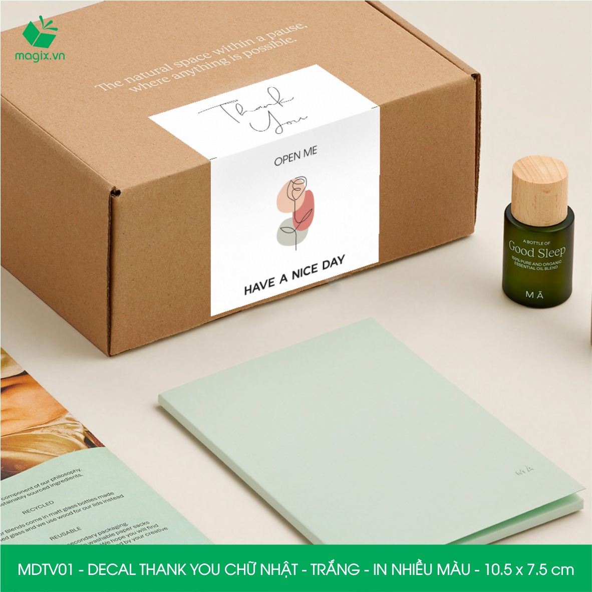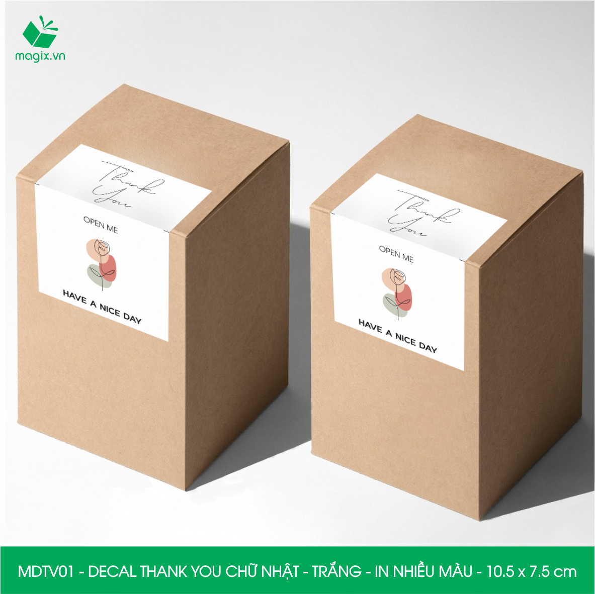 ✨MDTV01 - 10.5x7.5 cm - 500 Decal Thank you hình chữ nhật dán hộp carton, Label Thank you, tem nhãn cảm ơn có sẵn keo dán niêm phong gói hàng