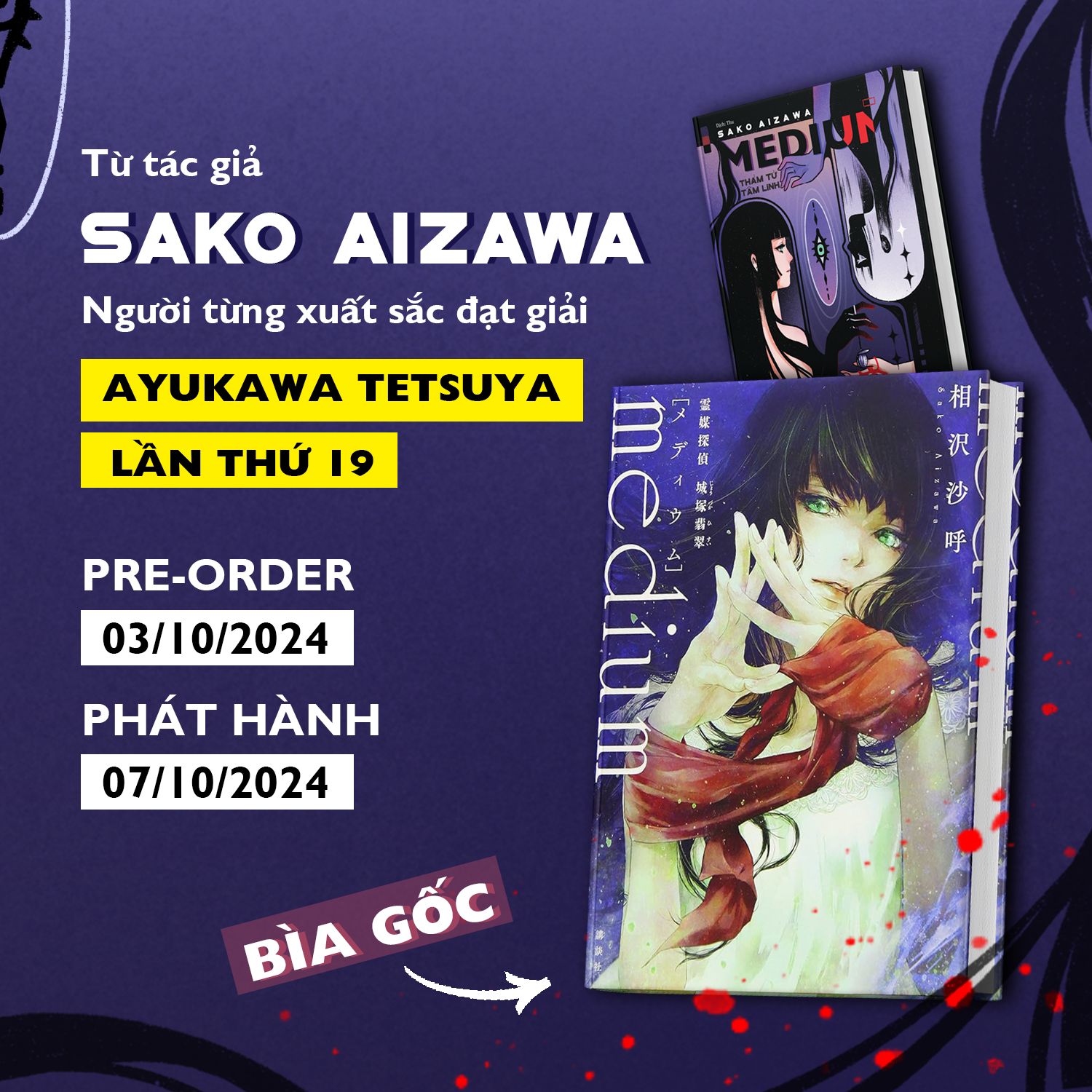 “MEDIUM – Thám tử tâm linh” là một trong những tác phẩm tiêu biểu của Sako Aizawa – người đã xuất sắc giành giải thưởng Ayukawa Tetsuya lần thứ 19 với tác phẩm đầu tay “Lọ Lem lúc nửa đêm”. Với ngòi bút khắc họa tinh tế cảm xúc nhân vật, ông đã tích cực cho ra đời các tác phẩm thuộc nhiều thể loại văn học khác nhau như trinh thám, lightnovel,…