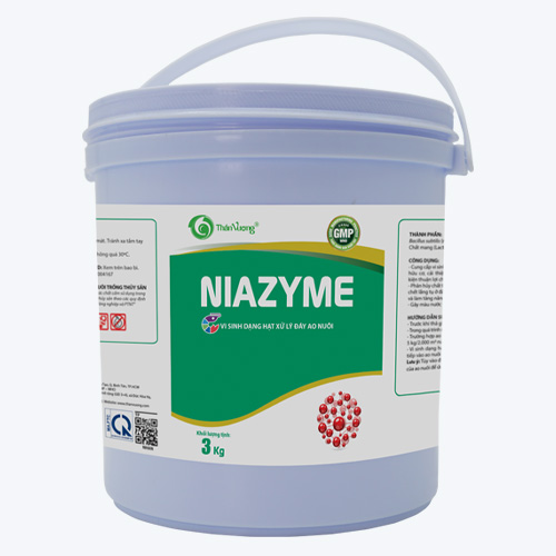 Chế phẩm có dạng hạt, các hạt này một phần cung cấp khoáng, một phần làm giá thể tạo môi trường sống ổn định cho vi sinh. Niazyme chứa tổ hợp các dòng vi sinh mang tính thích nghi cao, xử lý được trong nhiều điều kiện ao nuôi khác nhau. Công dụng :