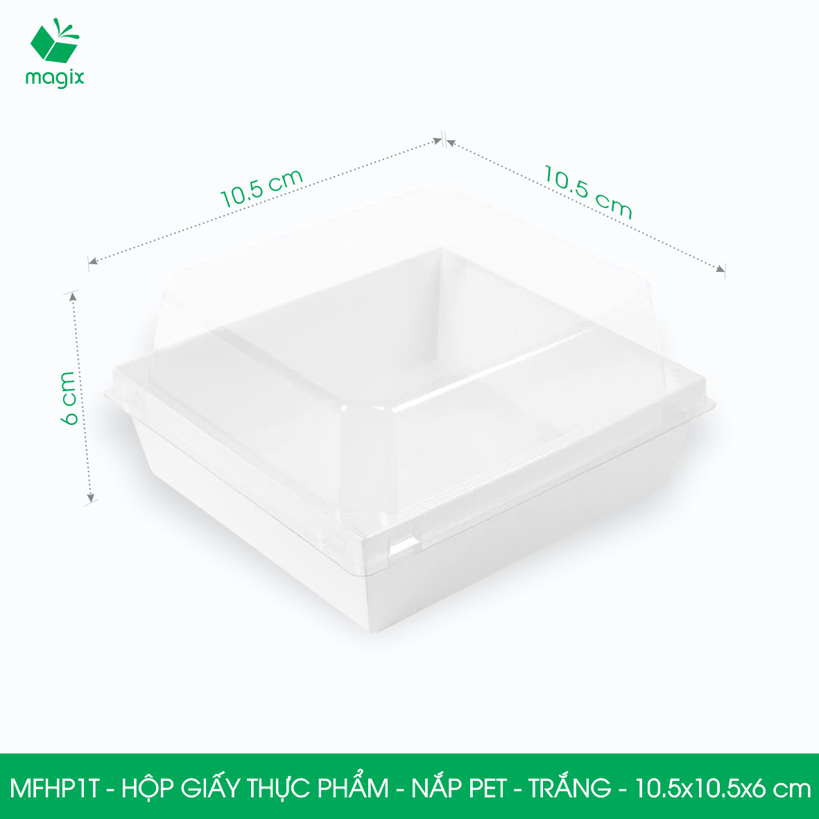 ✨MFHP1T - 10.5x10.5x6 cm - 25 hộp giấy thực phẩm màu trắng nắp Pet, hộp giấy vuông đựng thức ăn, hộp bánh nắp trong